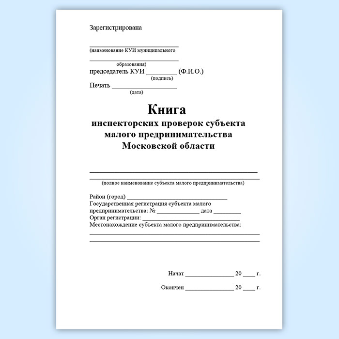 Книга инспекторских проверок субъекта малого предпринимательства Московской области в Бердске купить