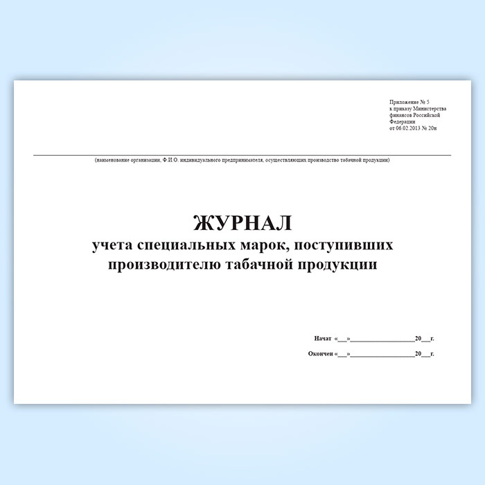 Журнал учета специальных марок, поступивших производителю табачной продукции в Бердске купить