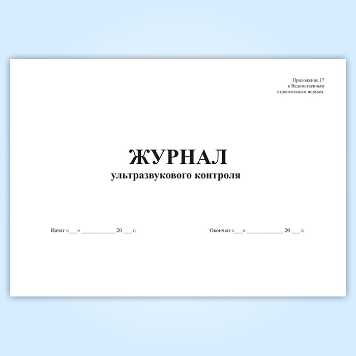 Журнал ультразвукового контроля. Приложение 17 в Бердске купить