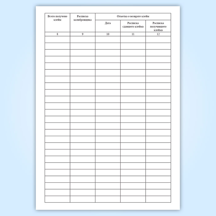 Журнал выдачи и получения калибровочных клейм в Бердске купить