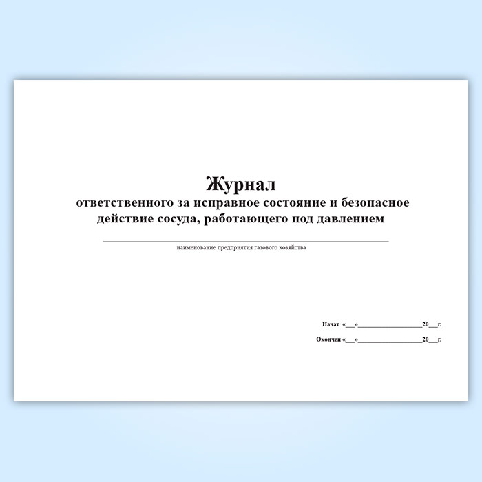Журнал ответственного за исправное состояние и безопасное действие сосуда, работающего под давлением в Бердске купить