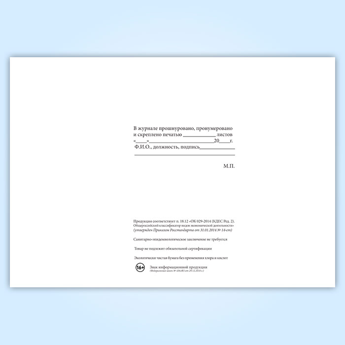 Вы получаете печатную продукцию прошнурованной и c местом для вашей печати в соответствии с действующими нормативными документами: