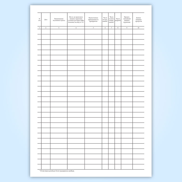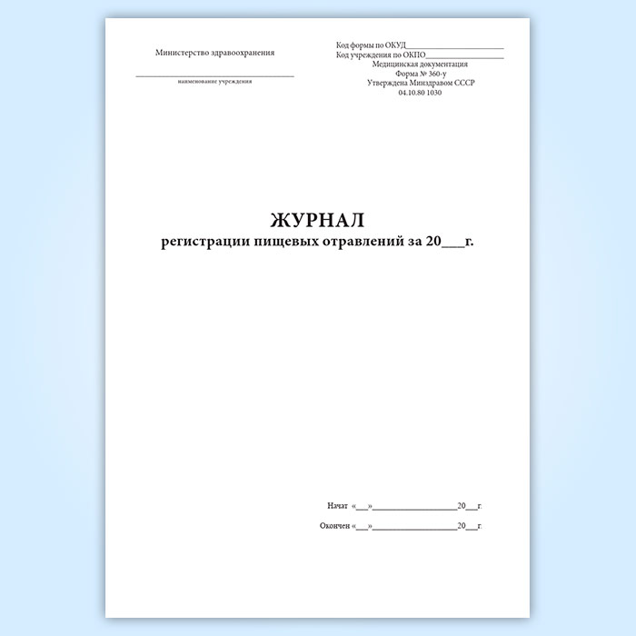 Журнал регистрации пищевых отравлений за год (форма 360/у) в Бердске купить