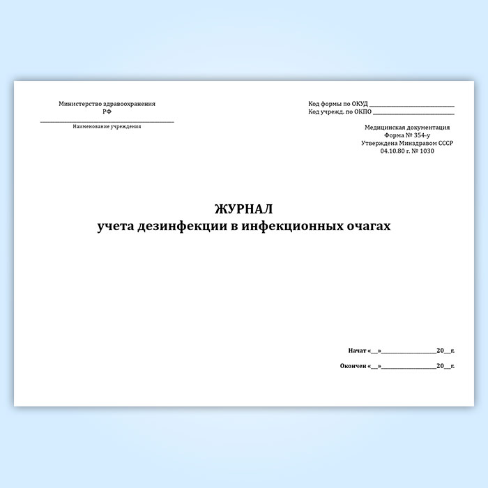 Журнал учета дезинфекции в инфекционных очагах (форма 354/у) в Бердске купить