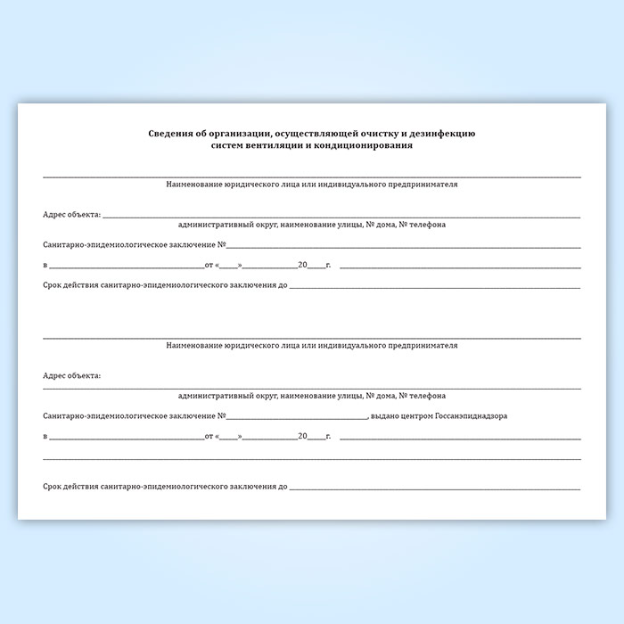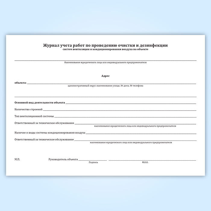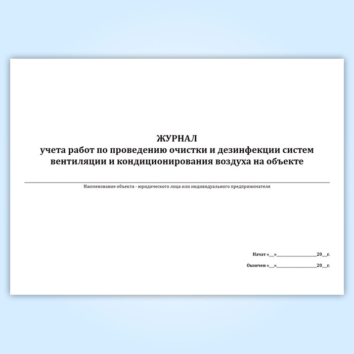 Журнал учета работ по проведению очистки и дезинфекции систем вентиляции и кондиционирования воздуха на объекте в Бердске купить