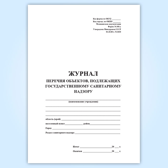 Журнал перечня объектов, подлежащих государственному санитарному надзору (форма 300/у) в Бердске купить