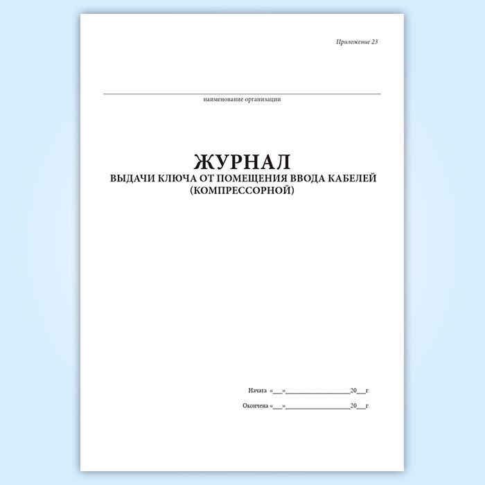 Журнал выдачи ключа от помещения ввода кабелей (компрессорной) в Бердске купить