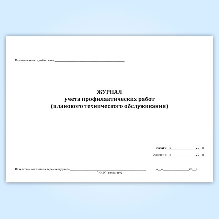 Журнал учета профилактических работ (планового технического обслуживания) в Бердске купить