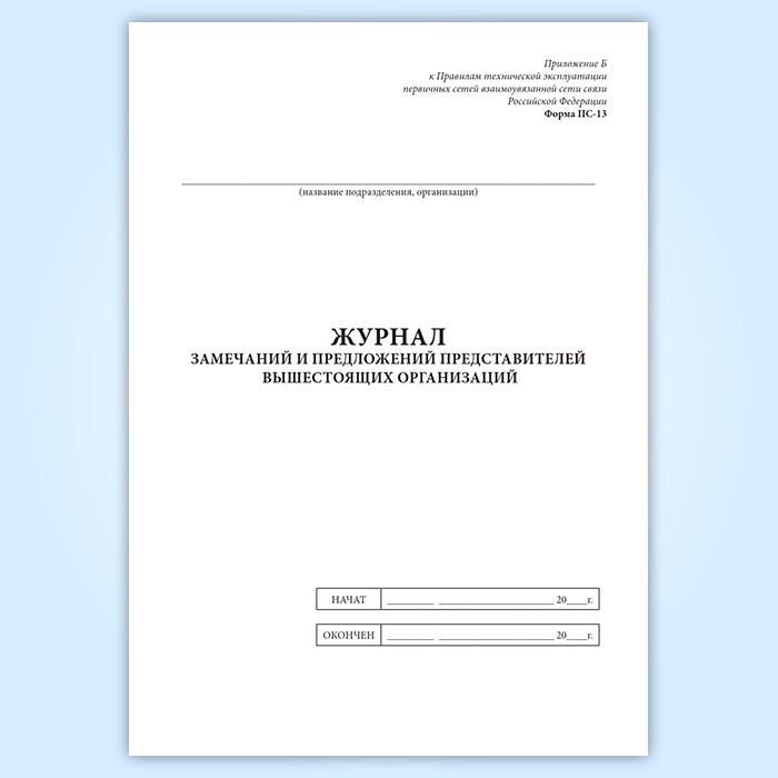 Журнал замечаний и предложений представителей вышестоящих организаций (форма ПС-13) в Бердске купить