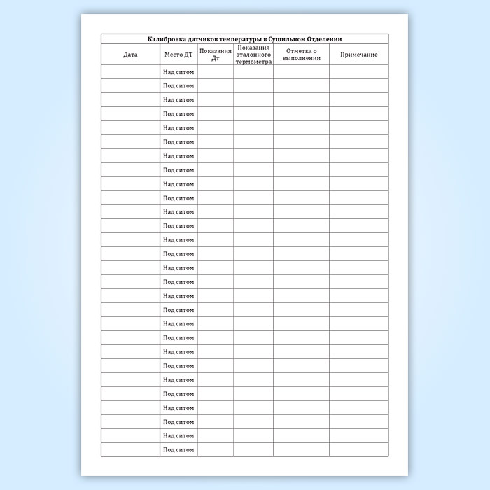 Журнал калибровки датчиков температуры в сушильном отделении в Бердске купить