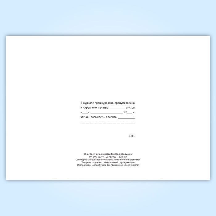 Вы получаете печатную продукцию прошнурованной и c местом для вашей печати в соответствии с действующими нормативными документами: