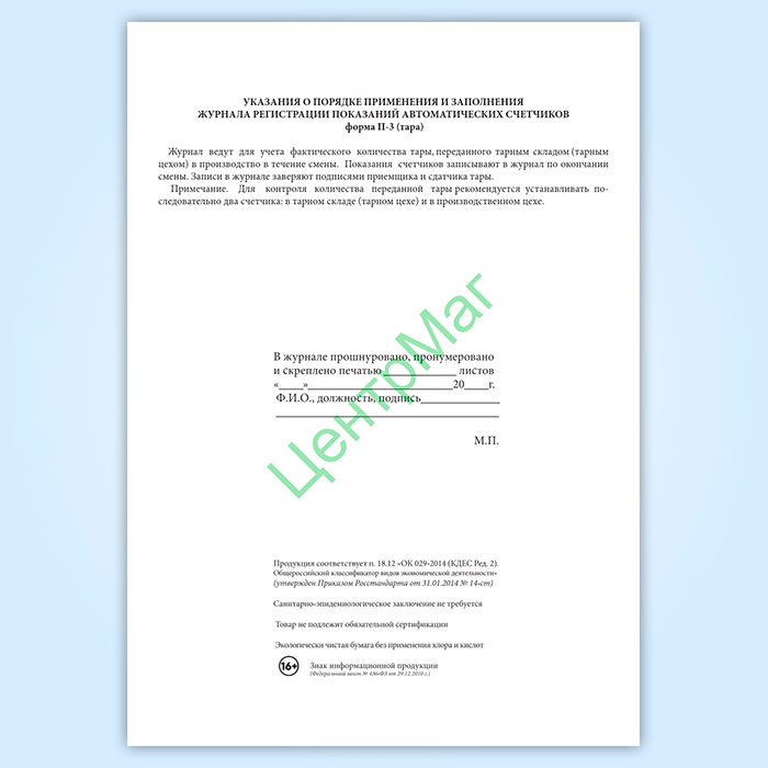 Журнал регистрации показаний автоматических счетчиков (форма № П-3 тара) в Бердске купить