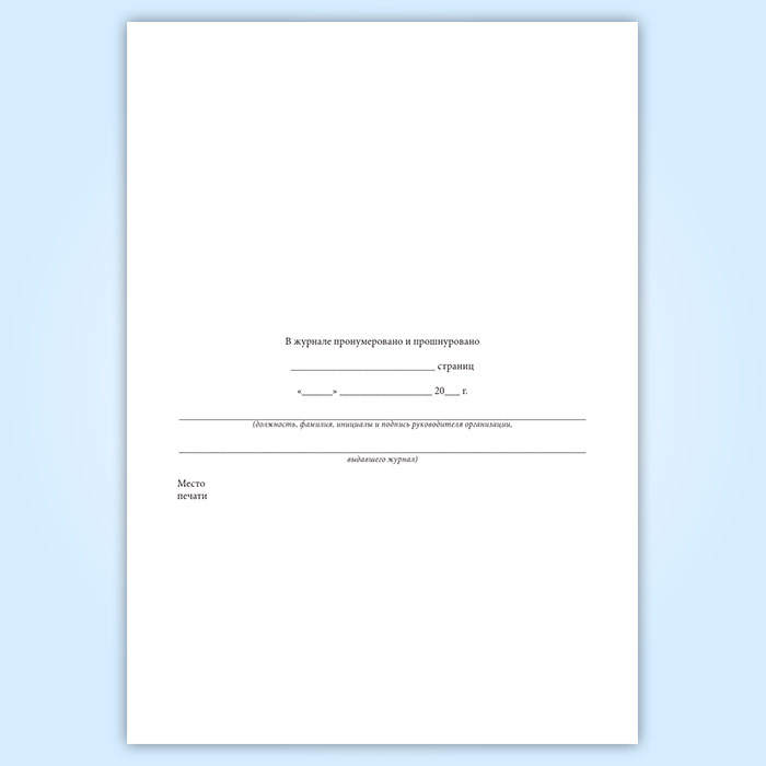 Вы получаете печатную продукцию прошнурованной и c местом для вашей печати в соответствии с действующими нормативными документами: