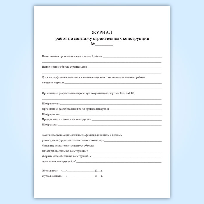 Журнал работ по монтажу строительных конструкций в Бердске купить