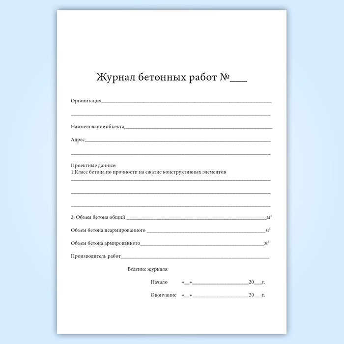 Журнал бетонных работ в Бердске купить
