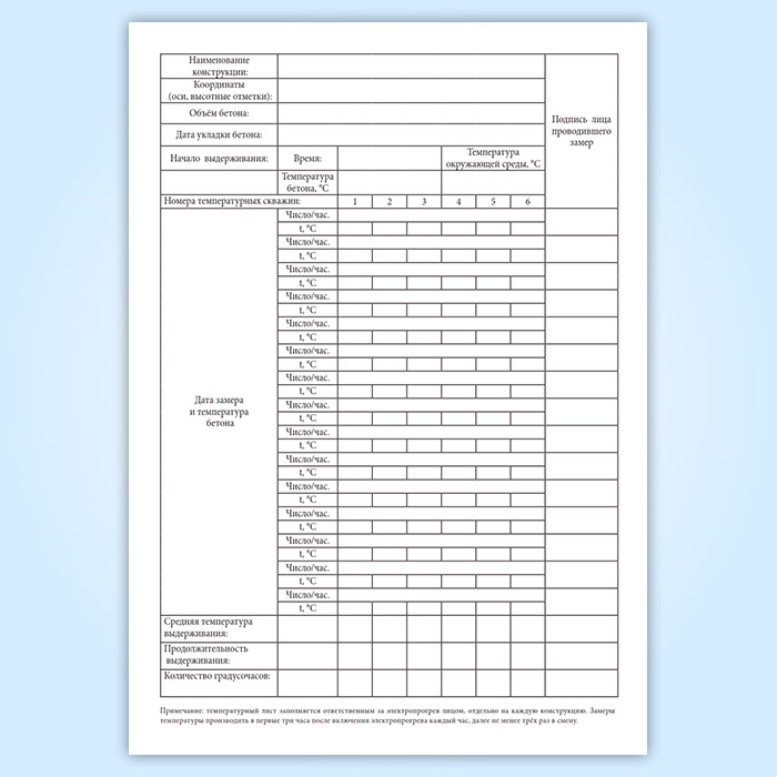 Журнал регистрации температуры бетона в монолитных конструкциях в Бердске купить