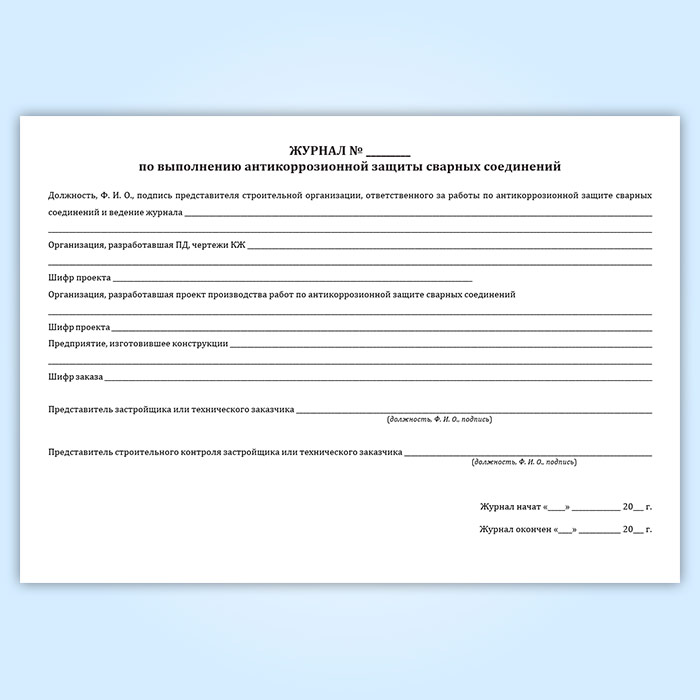 Журнал по выполнению антикоррозионной защиты сварных соединений (форма 12.3) в Бердске купить