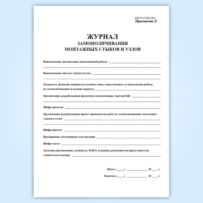 Журнал замоноличивания монтажных стыков и узлов в Бердске купить