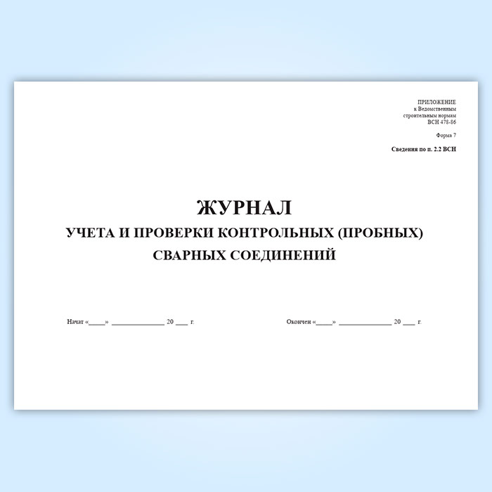 Журнал учета и проверки качества контрольных (пробных) сварных соединений (форма 7) в Бердске купить
