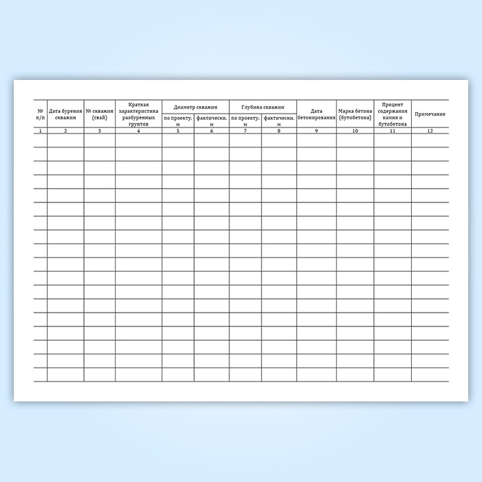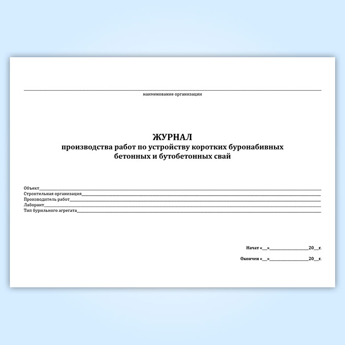 Журнал производства работ по устройству коротких буронабивных бетонных и бутобетонных свай в Бердске купить