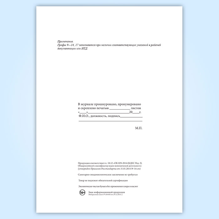 Вы получаете печатную продукцию прошнурованной и c местом для вашей печати в соответствии с действующими нормативными документами: