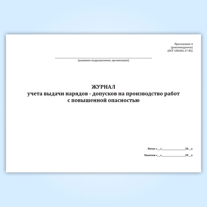 Журнал учета выдачи нарядов-допусков на производство работ с повышенной опасностью в Бердске купить