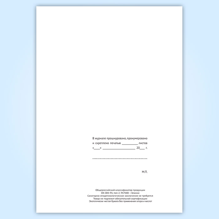 Вы получаете печатную продукцию прошнурованной и c местом для вашей печати в соответствии с действующими нормативными документами: