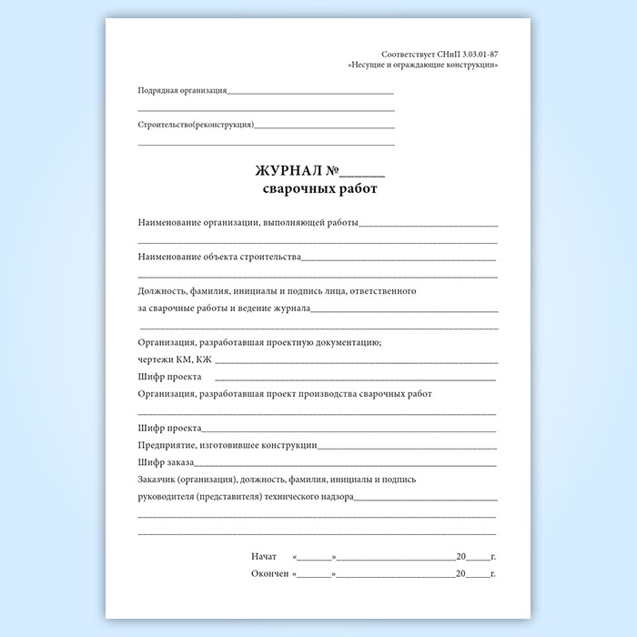 Журнал сварочных работ (СНиП 30301-87) в Бердске купить