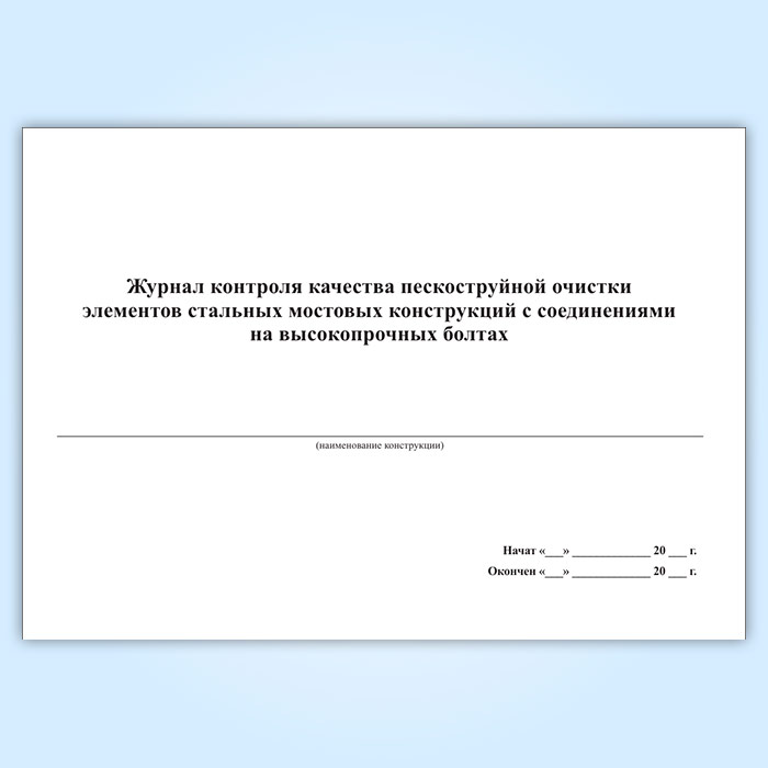 Журнал контроля качества пескоструйной очистки элементов стальных мостовых конструкций с соединениями на высокопрочных болтах в Бердске купить