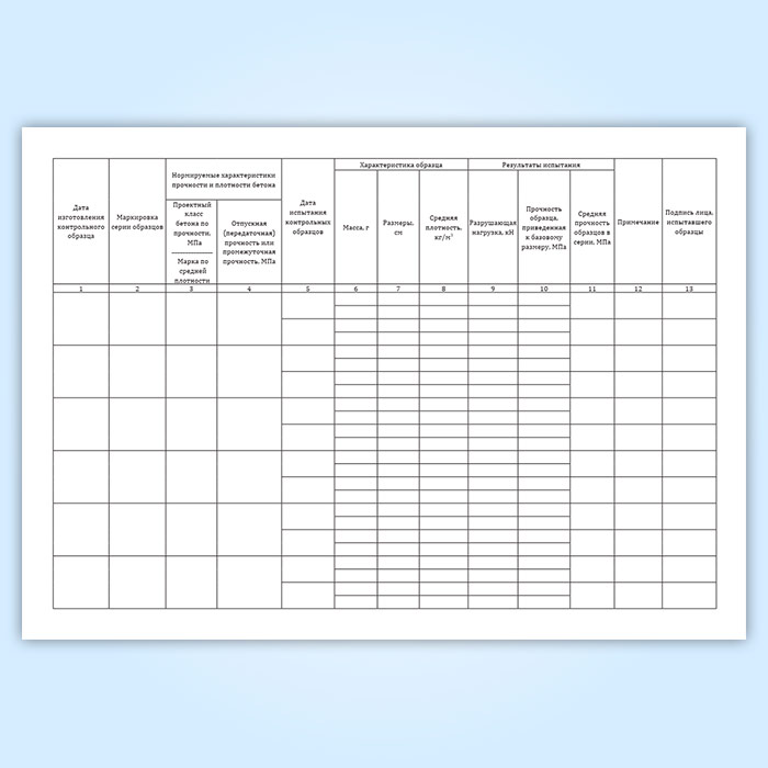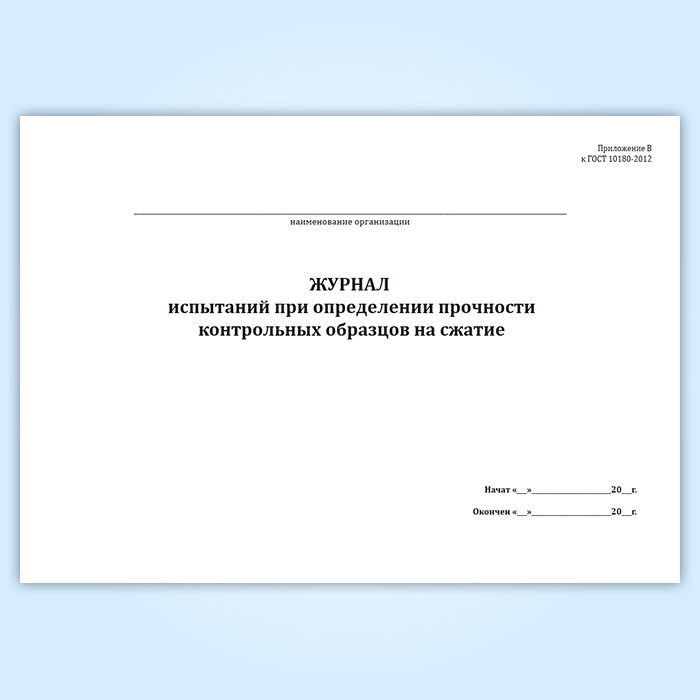 Журнал испытаний при определении прочности контрольных образцов на сжатие в Бердске купить