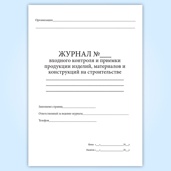 Журнал входного контроля и приемки продукции, изделий, материалов и конструкций на строительстве в Бердске купить