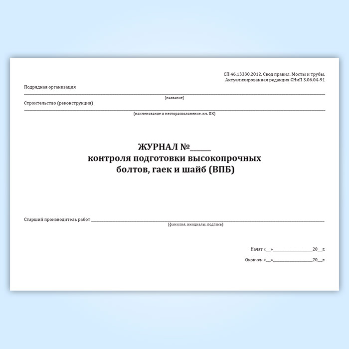 Журнал контроля подготовки высокопрочных болтов, гаек и шайб в Бердске купить