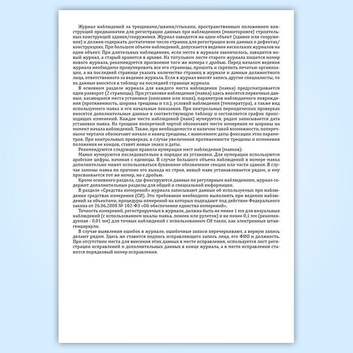 Журнал наблюдений за трещинами/швами/стыками, пространственным положением конструкций (для одного объекта) в Бердске купить
