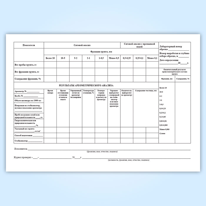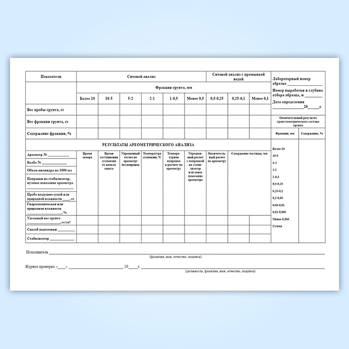 Журнал лабораторного определения гранулометрического (зернового) состава грунта в Бердске купить