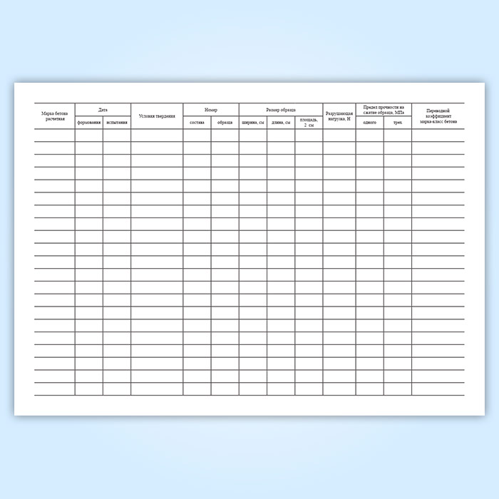 Журнал результатов по определению прочности бетона эталонным молотком Кашкарова в Бердске купить