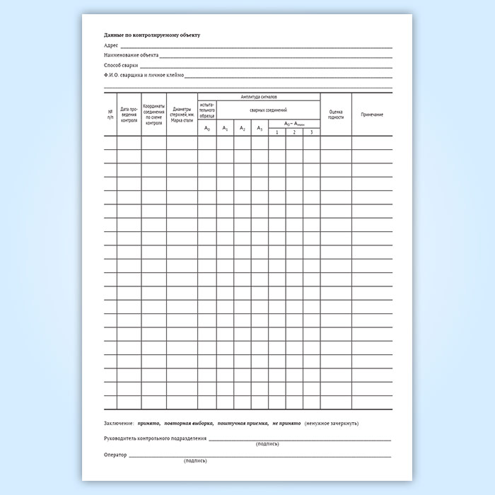 Журнал (протокол) ультразвукового контроля сварных стыковых соединений стержней арматуры в Бердске купить