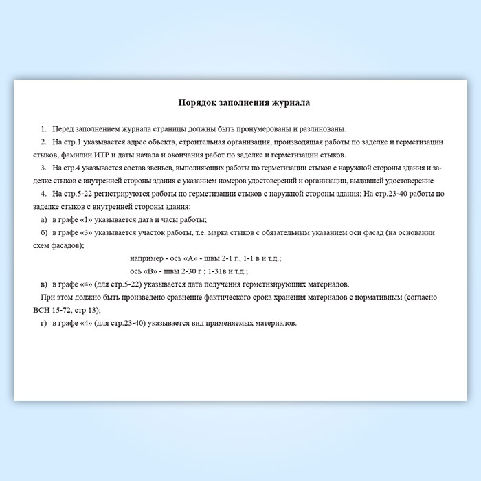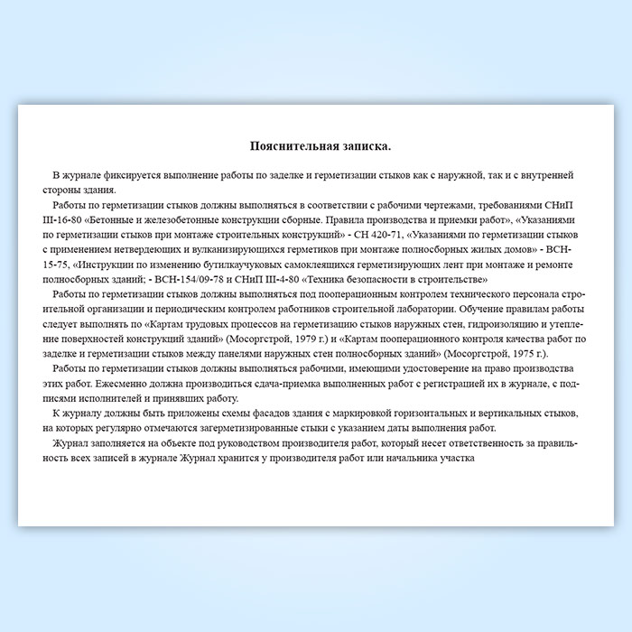 Журнал контроля качества производства работ по заделке и герметизации стыков полносборных зданий в Бердске купить