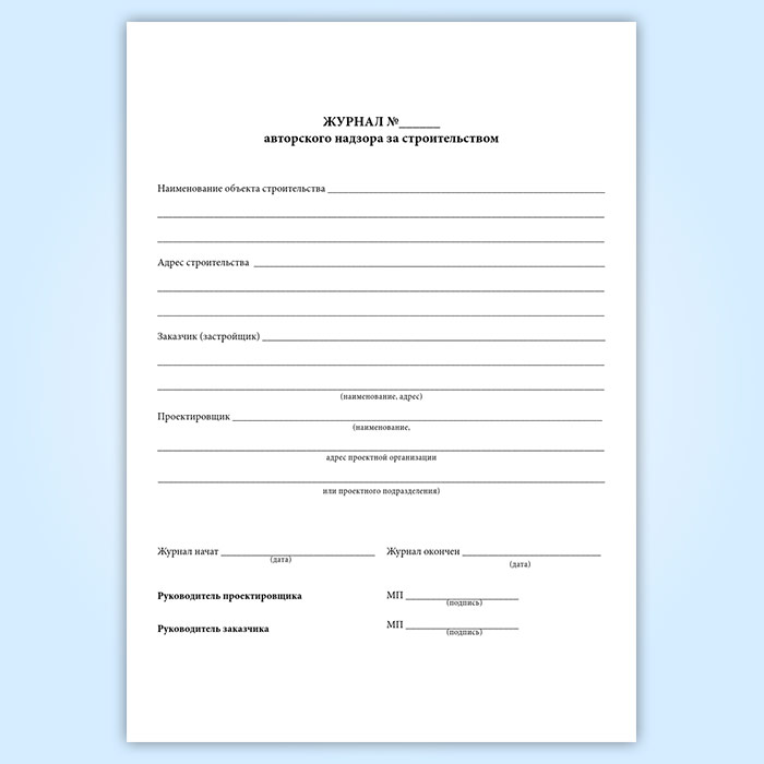 Журнал авторского надзора за строительством (СП 246.1325800.2016) в Бердске купить