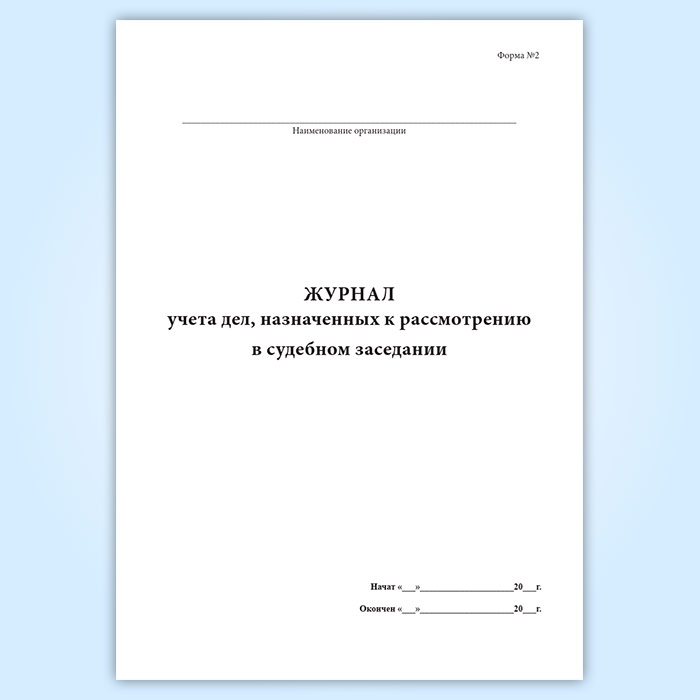Журнал учета дел, назначенных к рассмотрению в судебном заседании (форма № 2) в Бердске купить