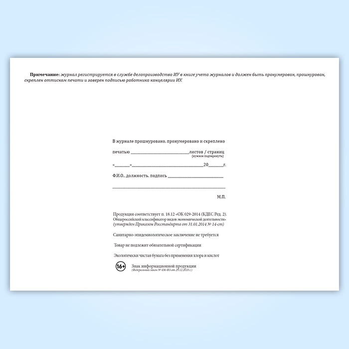 Вы получаете печатную продукцию прошнурованной и c местом для вашей печати в соответствии с действующими нормативными документами: