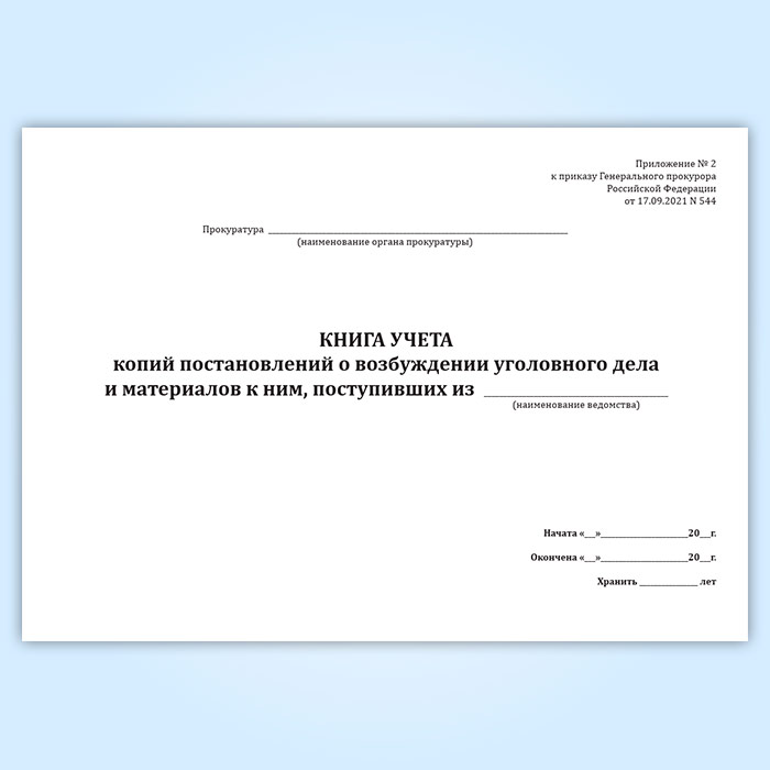 Книга учета копий постановлений о возбуждении уголовного дела и материалов к ним в Бердске купить