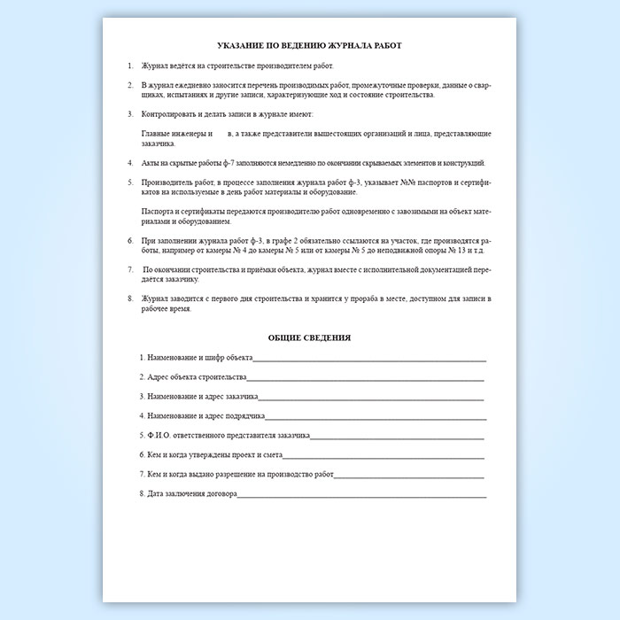 Журнал производства работ по строительству теплопровода в Бердске купить