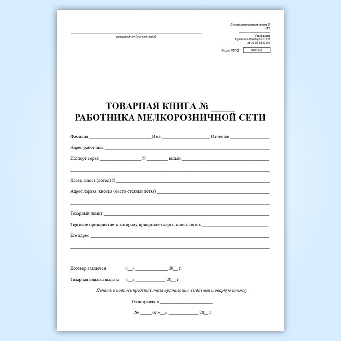 Товарная книга работника мелкорозничной сети. Специализированная (форма № 1-РТ) в Бердске купить