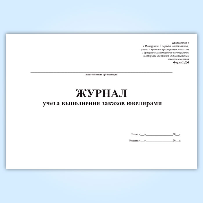 Журнал учета выполнения заказов ювелирами (форма 2-ДМ) в Бердске купить