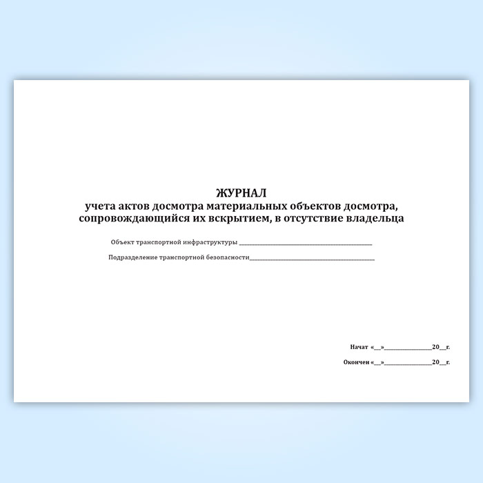 Журнал учета актов досмотра материальных объектов досмотра, сопровождающийся их вскрытием, в отсутствие владельца в Бердске купить