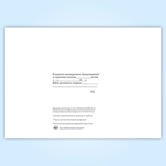 Вы получаете печатную продукцию прошнурованной и c местом для вашей печати в соответствии с действующими нормативными документами: