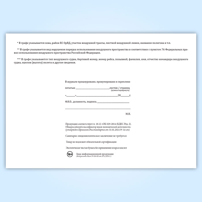 Журнал учета нарушений порядка использования воздушного пространства в Бердске купить