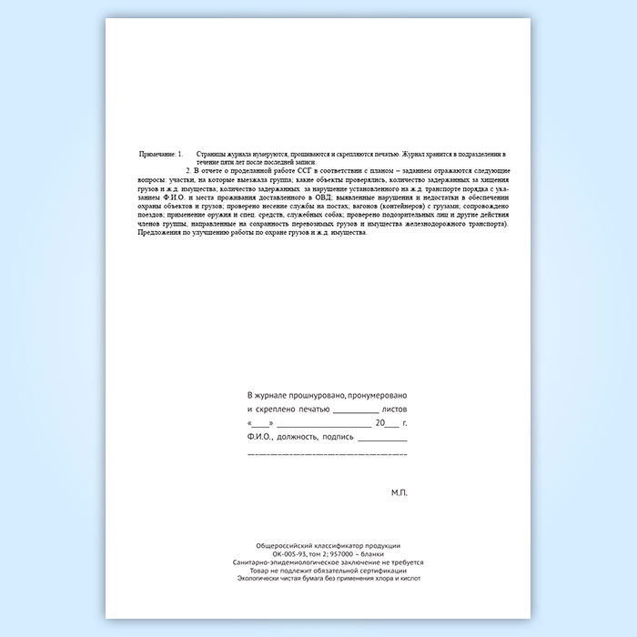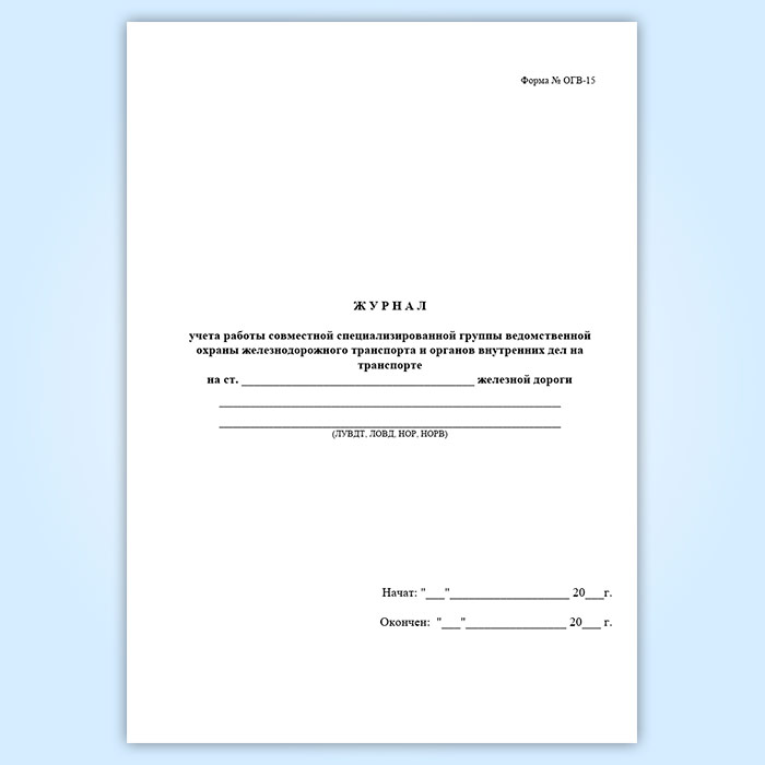 Журнал учета работы совместной специализированной группы ведомственной охраны железнодорожного транспорта и органов внутренних дел на транспорте (форма № ОГВ-15) в Бердске купить
