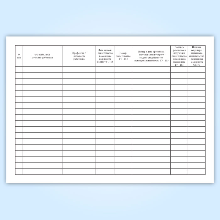 Журнал выдачи и регистрации удостоверений помощника машиниста ССПС (форма ТУ-153) в Бердске купить