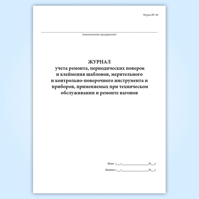 Журнал учета ремонта, периодических поверок и клеймения шаблонов, мерительного и контрольно-поверочного инструмента и приборов, применяемых при техническом обслуживании и ремонте вагонов (форма ВУ-40) в Бердске купить